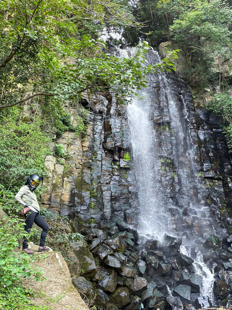 バイクと撮影できる滝が少ない中「男滝」なら、ばっちり撮影できます。肥前の三滝と呼ばれる一つに数えられ、玄武岩のゴツゴツした岩肌に流れる滝は迫力ありです。